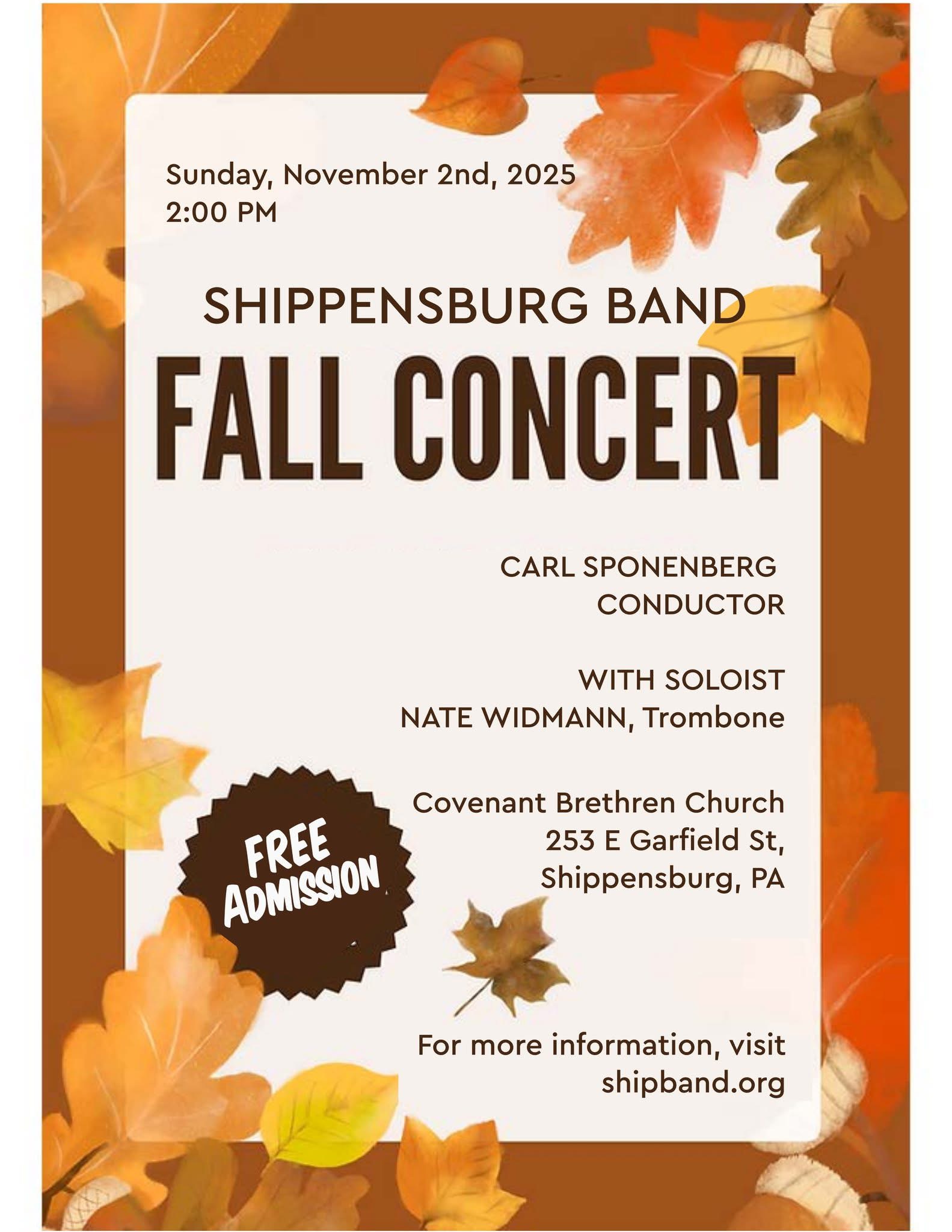 Free admission- come out and hear the wonderful Shippensburg Band at their fall concert! |